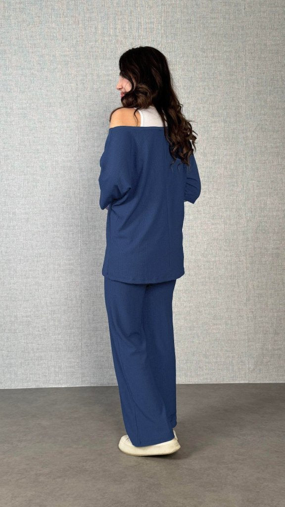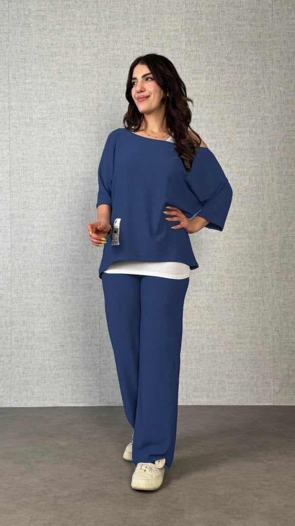 Kadın Kısa Kollu Omuzlardan Açık Yarasa Kollu Bürümcük Bluz Ve Pantolon Ve Viskon Atlet