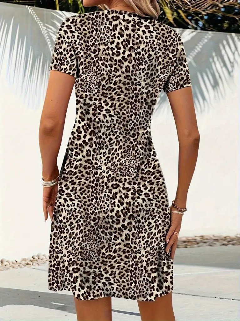 Kadın Kısa Kollu V çapraz Yaka Detaylı Desenli Süprem Elbise