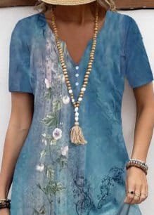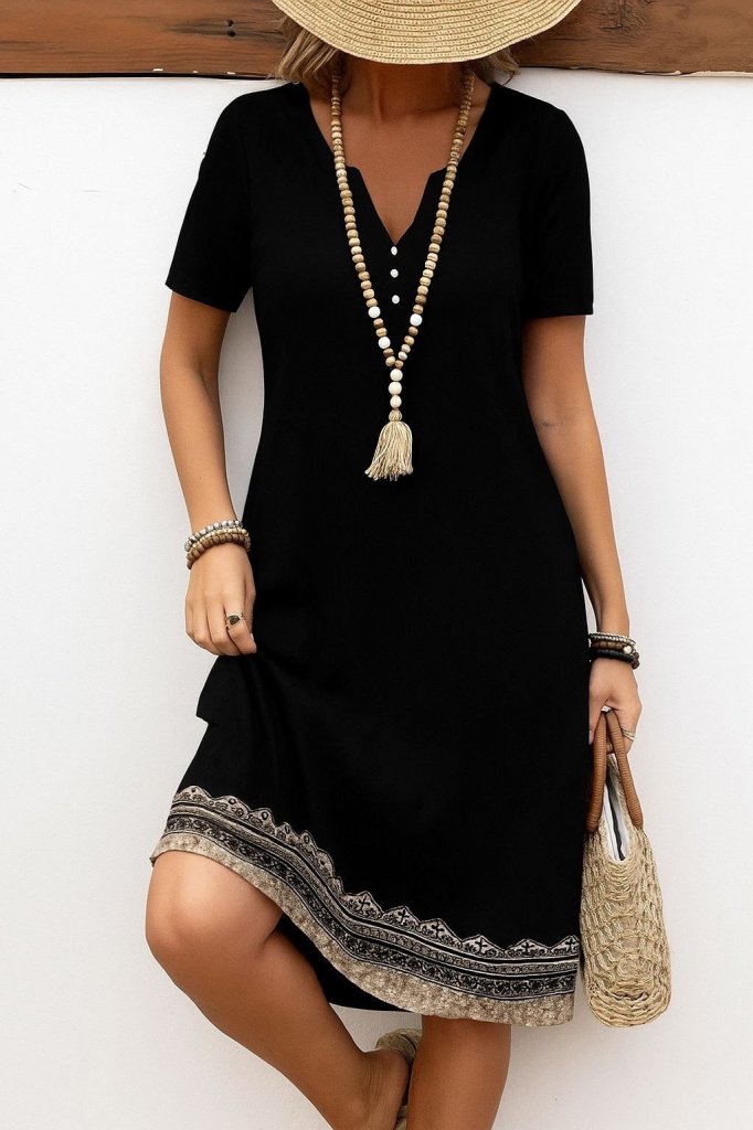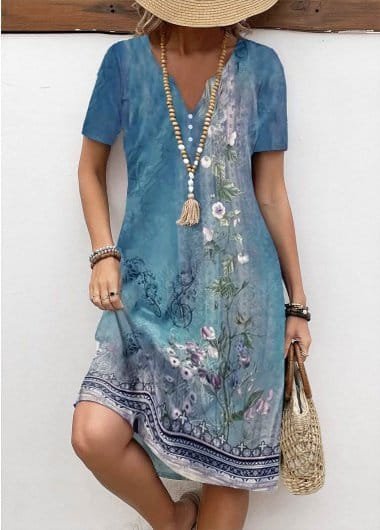 Kadın Kısa Kollu V Yakalı çiçek Baskılı Midi Süprem Elbise