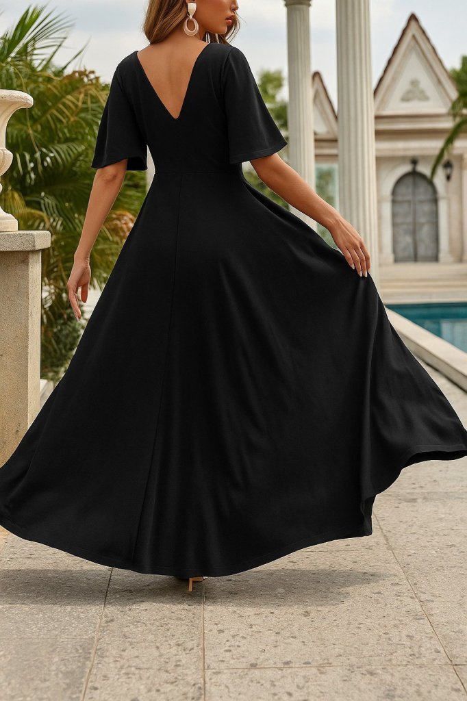 Kadın Kısa Kollu V Yakalı çiçek Desenli Süprem Elbise