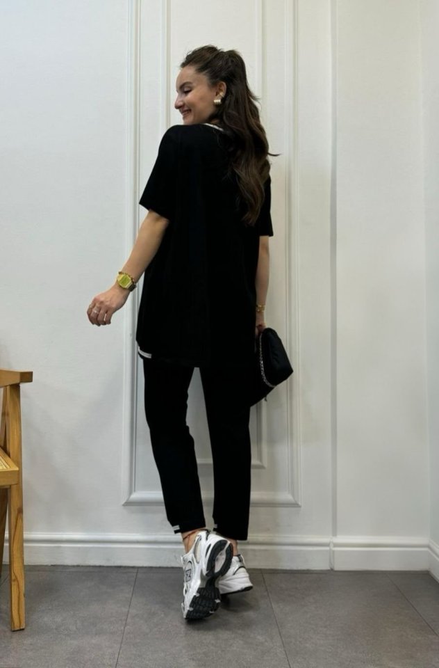 Kadın Kısa Kollu V Yakalı Iki Iplik Bluz Ve Pantolon Ikili Takım