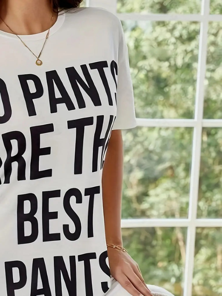 Kadın Kısa Kollu Yazı Baskılı Basic Mini Elbise