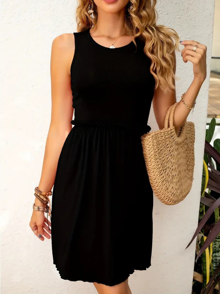 Kadın Kolsuz Bel Lastik Ve Büzgü Detay Viskon Mini Elbise