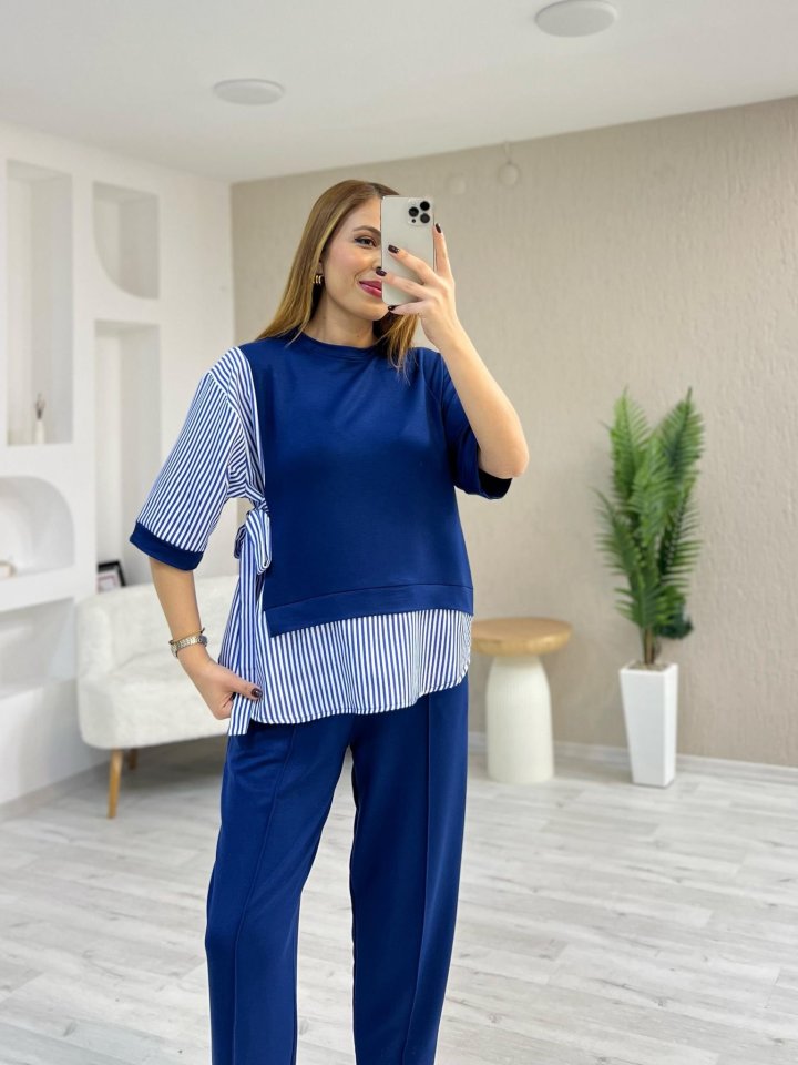 Kadın Kristal 2 Iplik Kumaş Yanları çizgili Takım
