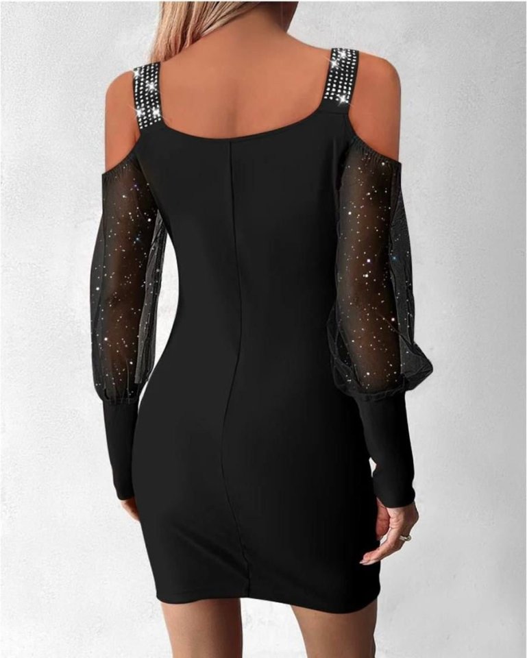 Kadın Kruvaze Yaka Omuz Ve Sırt Dekolteli Taş Detay Mini Elbise