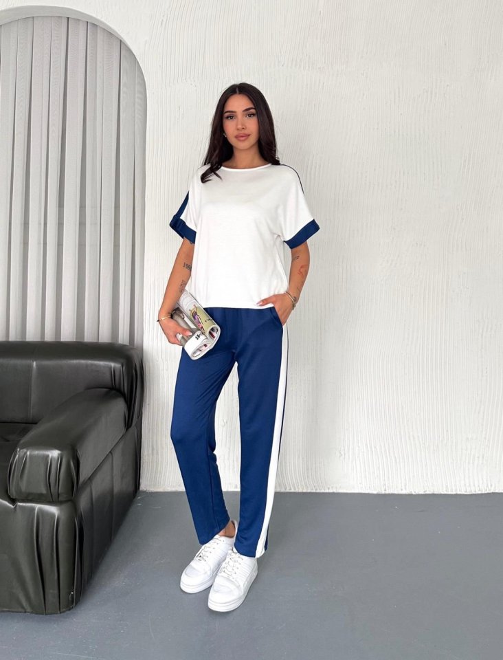 Kadın Modal Dokulu Kumaş Yanı şeritli Takım