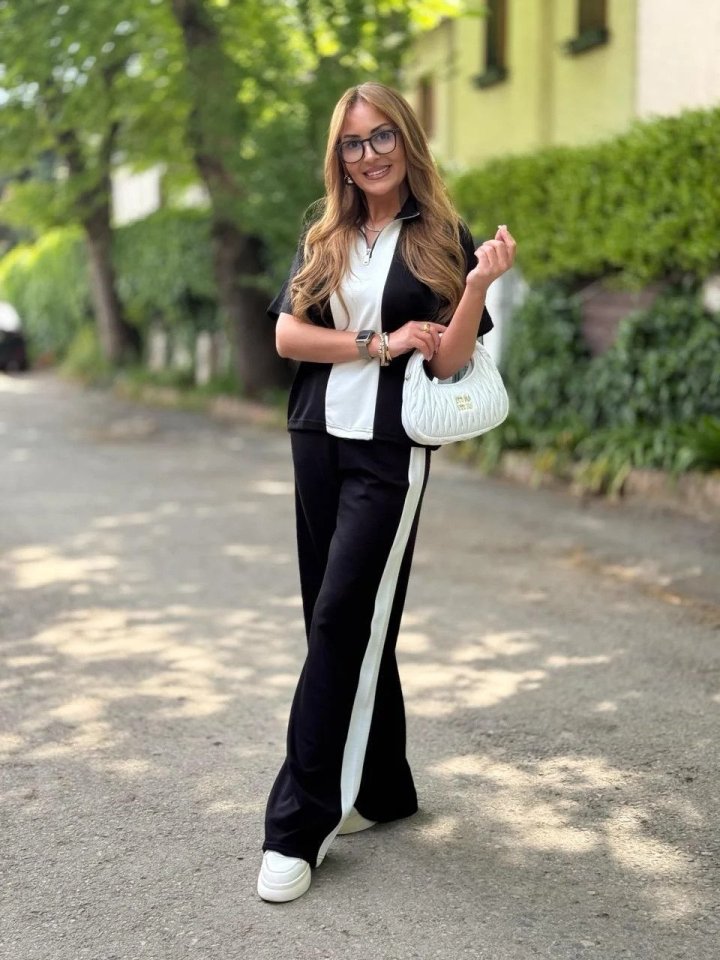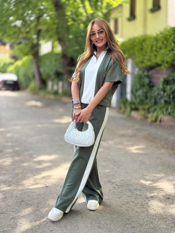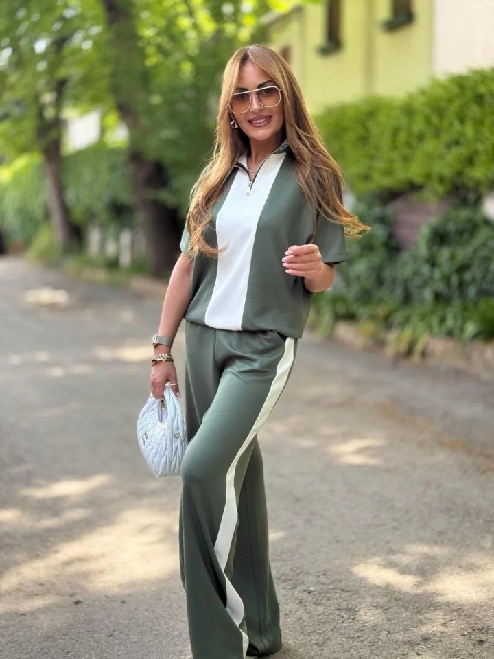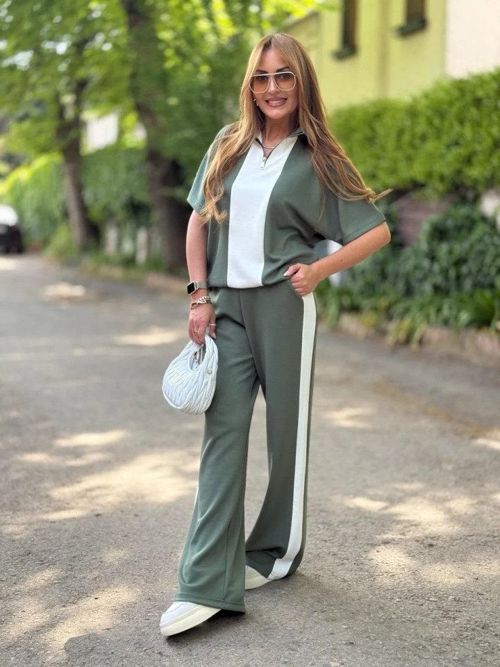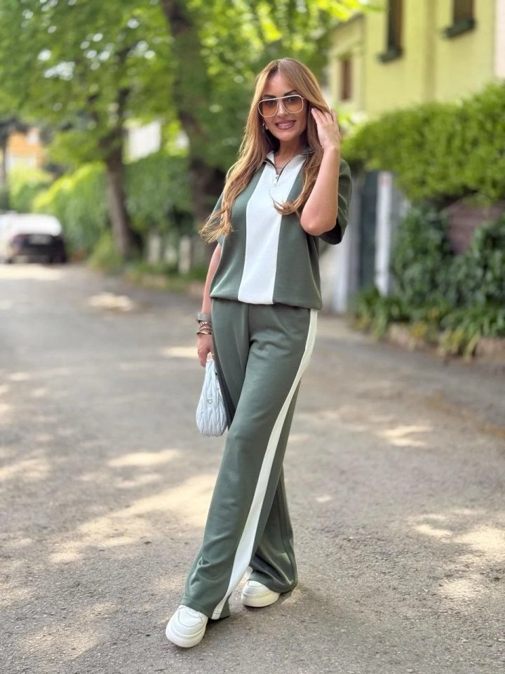 Kadın Modal Kumaş Yakası Fermuarlı şerit Detaylı Takım