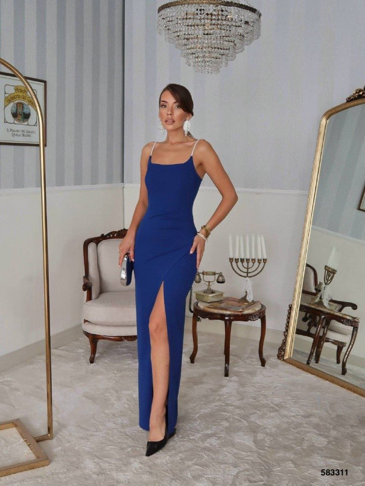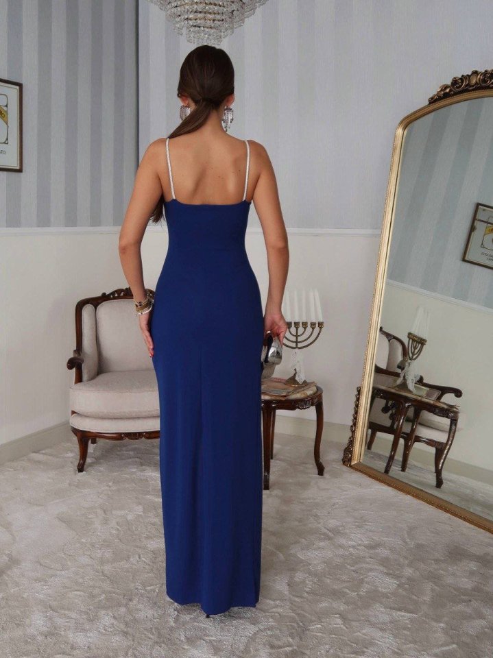 Kadın Omuz Askılı Derin Yırtmaç Detay Maxi Boy Elbise