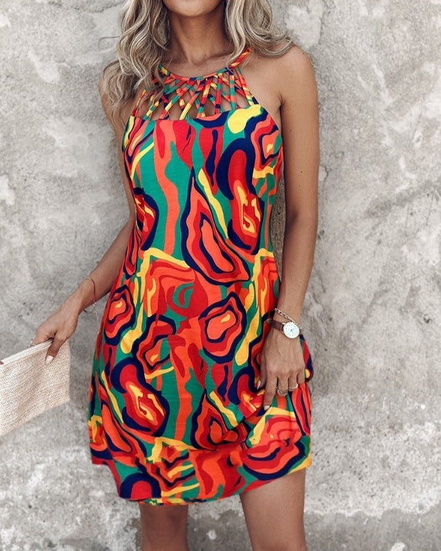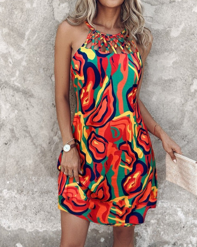 Kadın Omuzlardan Açık çapraz şerit Detaylı Desenli Süprem Elbise