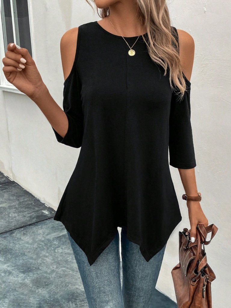 Kadın Omuzlardan Açık Sıfır Yaka Asimetrik Kesim Detay Viskon Bluz
