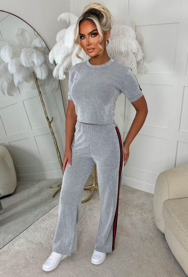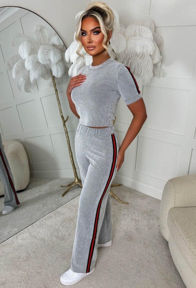 Kadın Ottoman Kumaş şerit Detaylı Ikili Takım