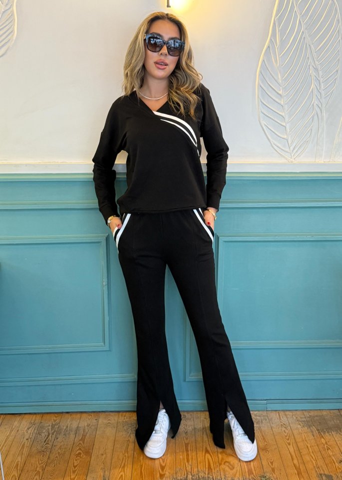 Kadın Ribana Detay Bluz Ve Ispanyol Paça Yırtmaçlı Pantolon Ikili Takım