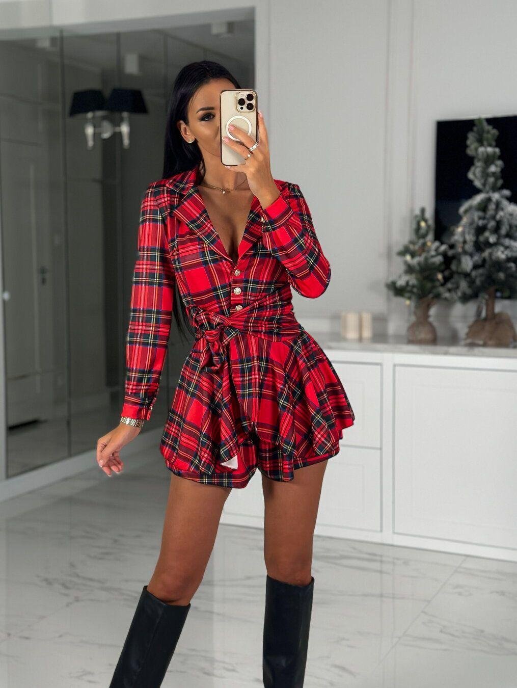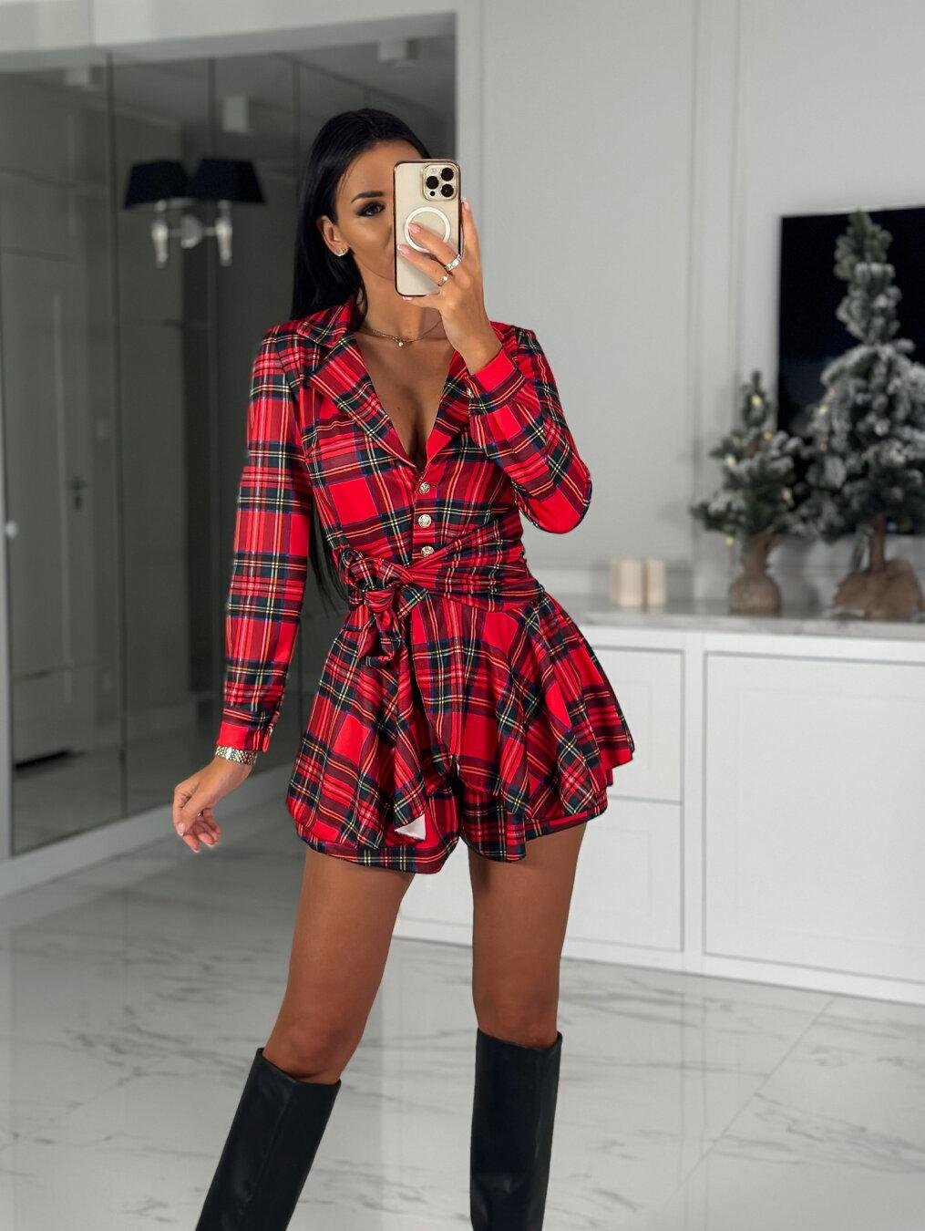 Kadın Scuba Kumaş Ekose Baskı şort Elbise