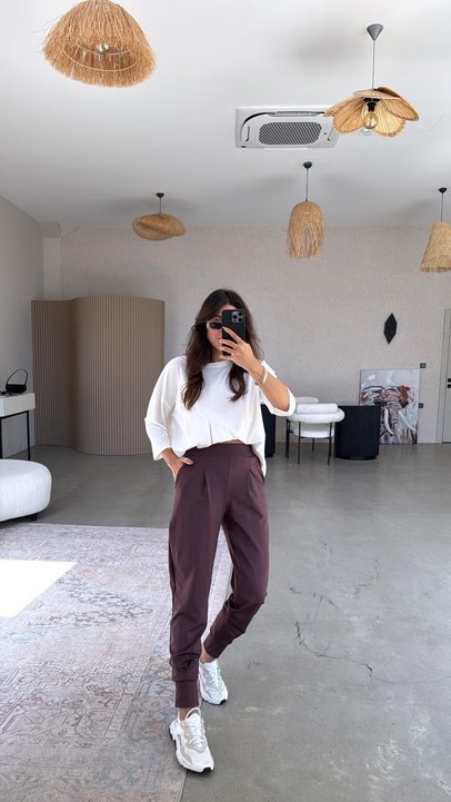 Kadın Scuba Modal Paça Manşet Pileli Pantolun