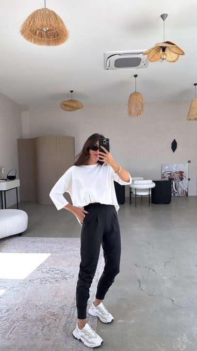 Kadın Scuba Modal Paça Manşet Pileli Pantolun