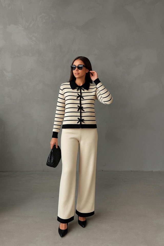 Kadın şerit Detay Bol Paça Pantolu ıkılı Takım
