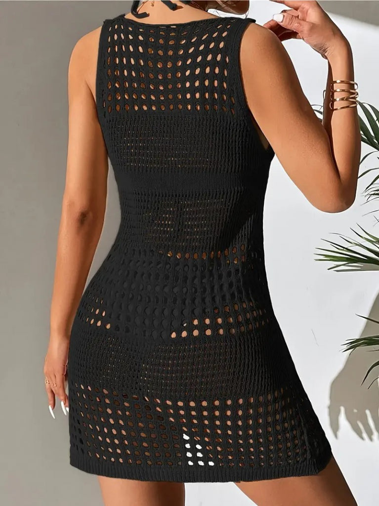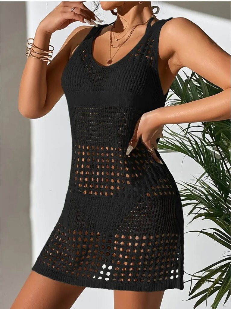 Kadın Sıfır Kol Delikli örgü Detay Mini Triko Pareo Elbise