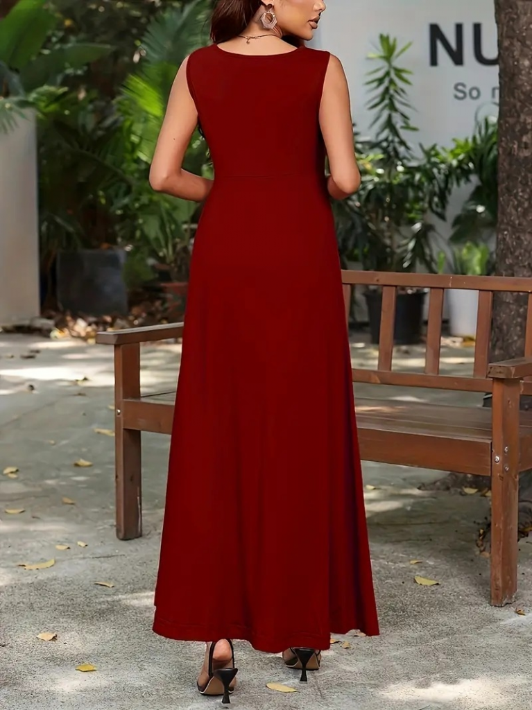 Kadın Sıfır Kol Kalın Askılı Viskon Tam Boy Elbise