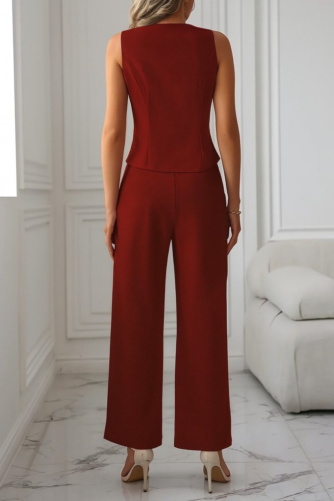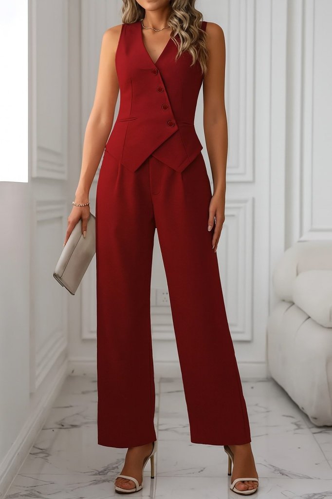 Kadın Sıfır Kollu çapraz V Yakalı önden Düğmeli Atlas Yelek Ve Pantolon Ikili Takım