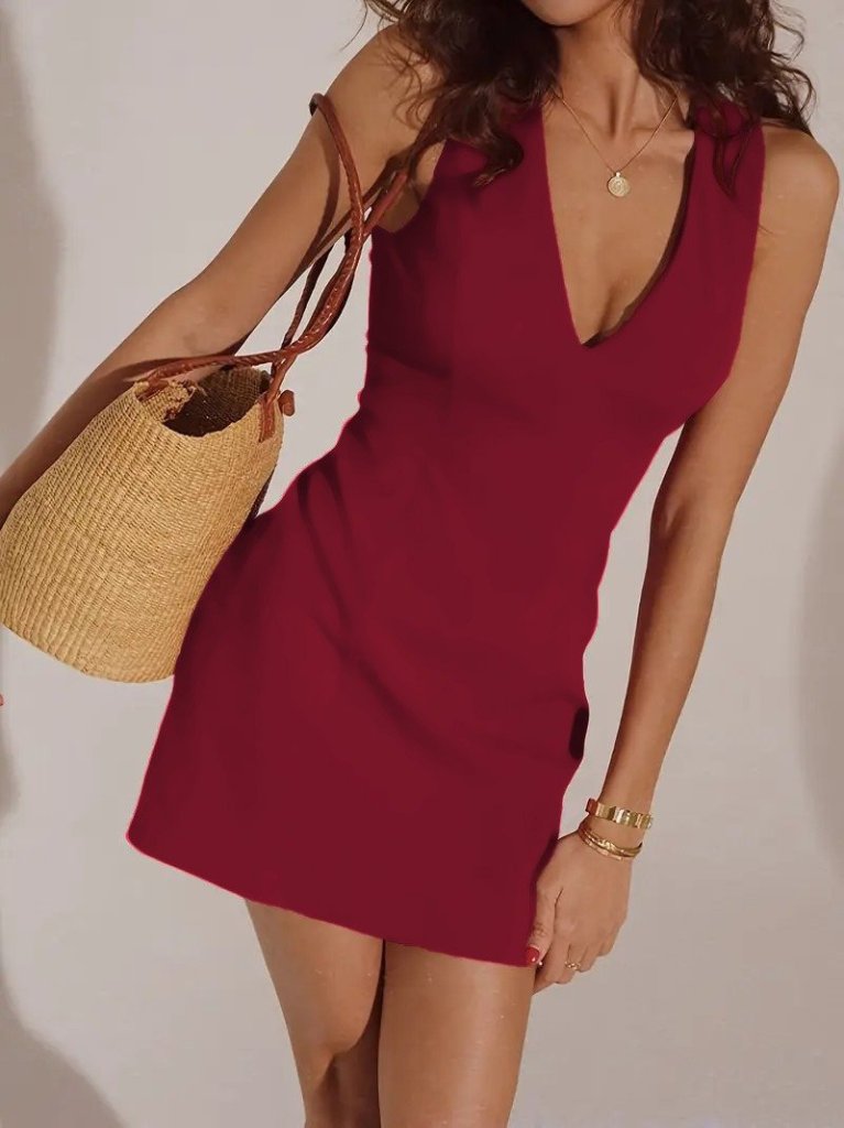 Kadın Sıfır Kollu Derin V Yakalı Janjan Krep Elbise