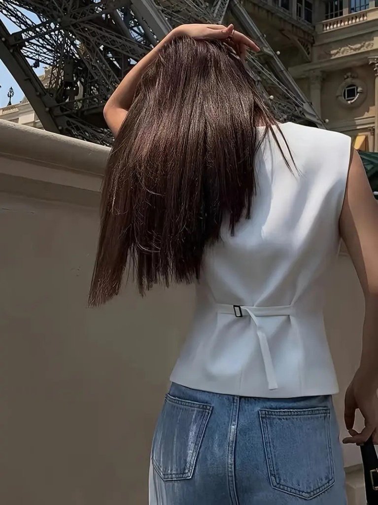 Kadın Sıfır Kollu önden Düğmeli Atlas Yelek