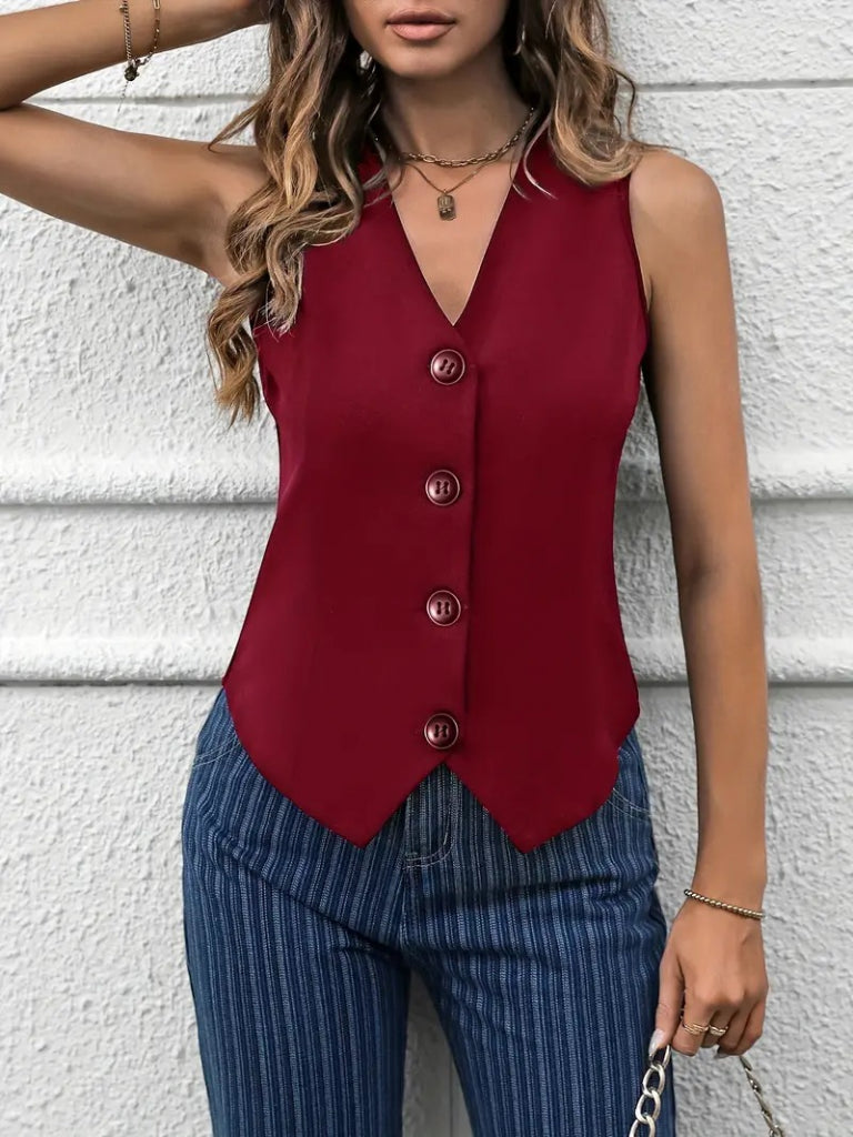 Kadın Sıfır Kollu V Yakalı önden Düğmeli Atlas Yelek