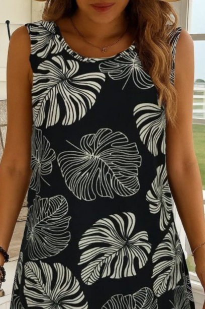 Kadın Sıfır Kollu Yuvarlak Yaka Desenli Süprem Elbise