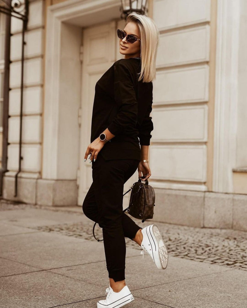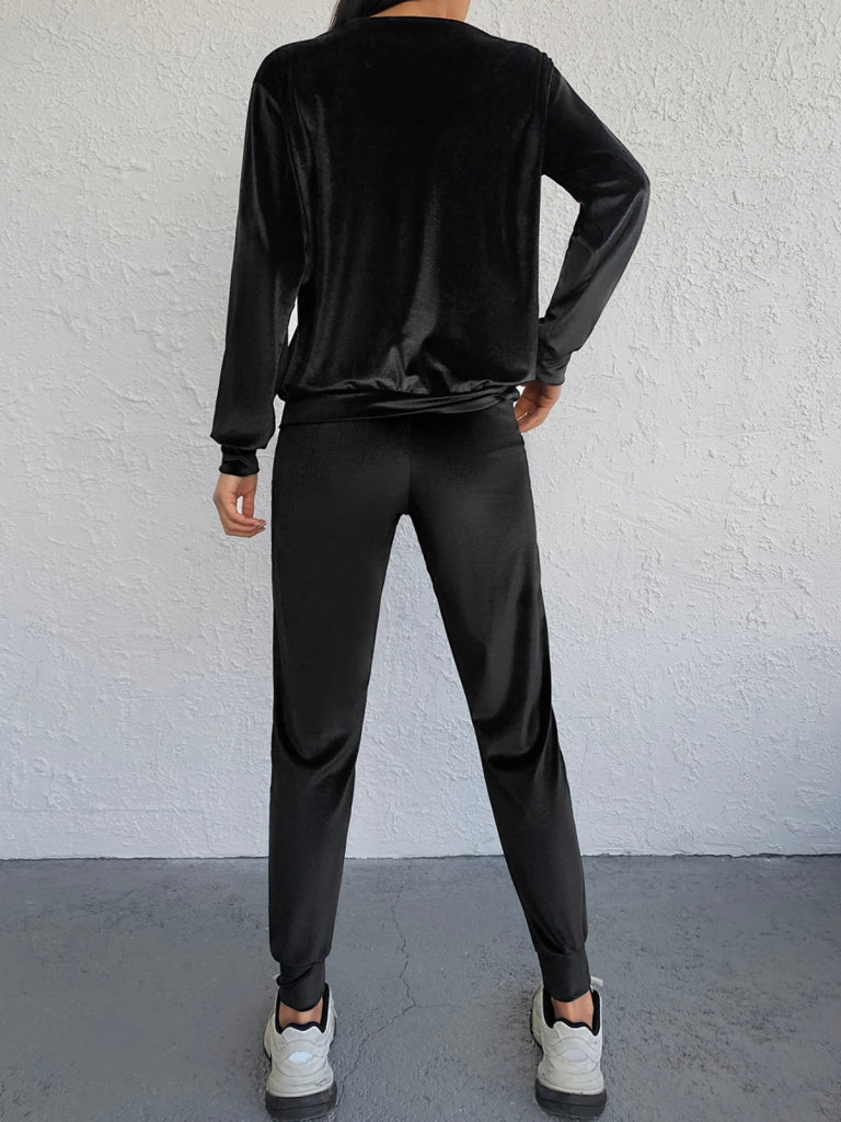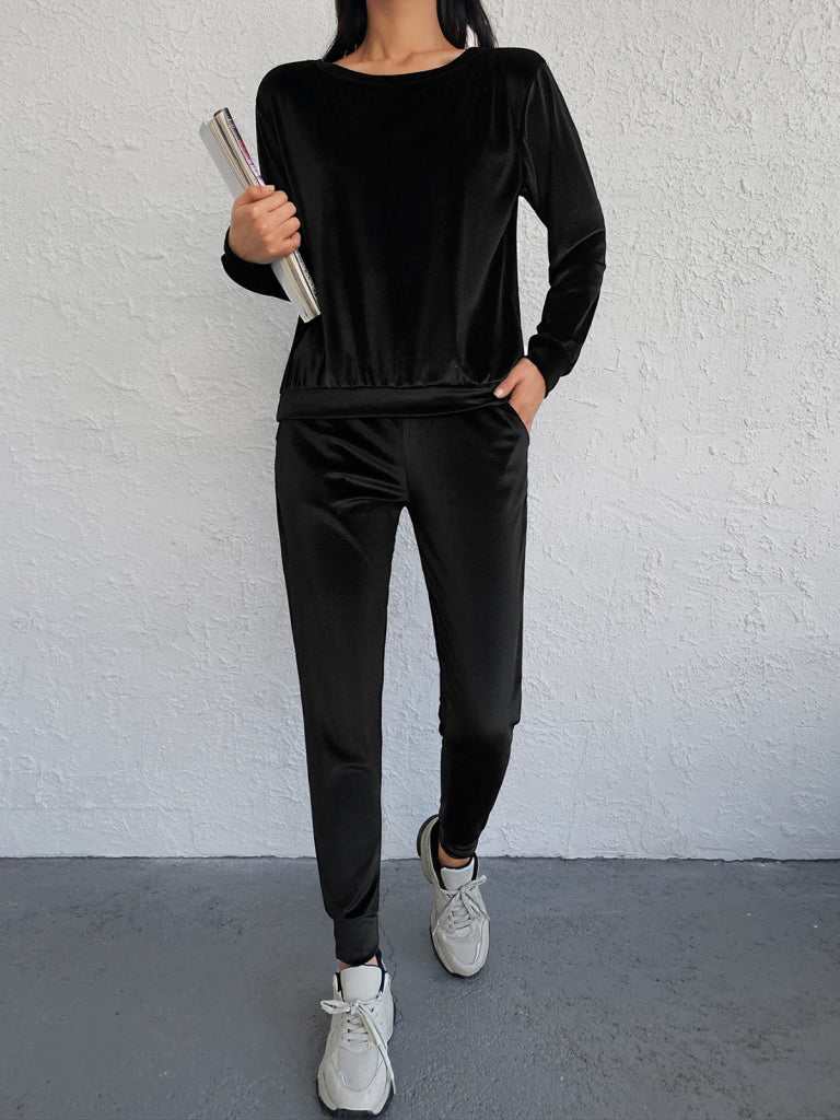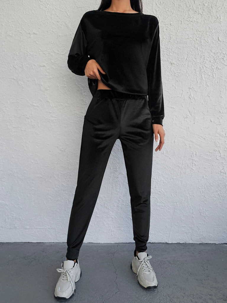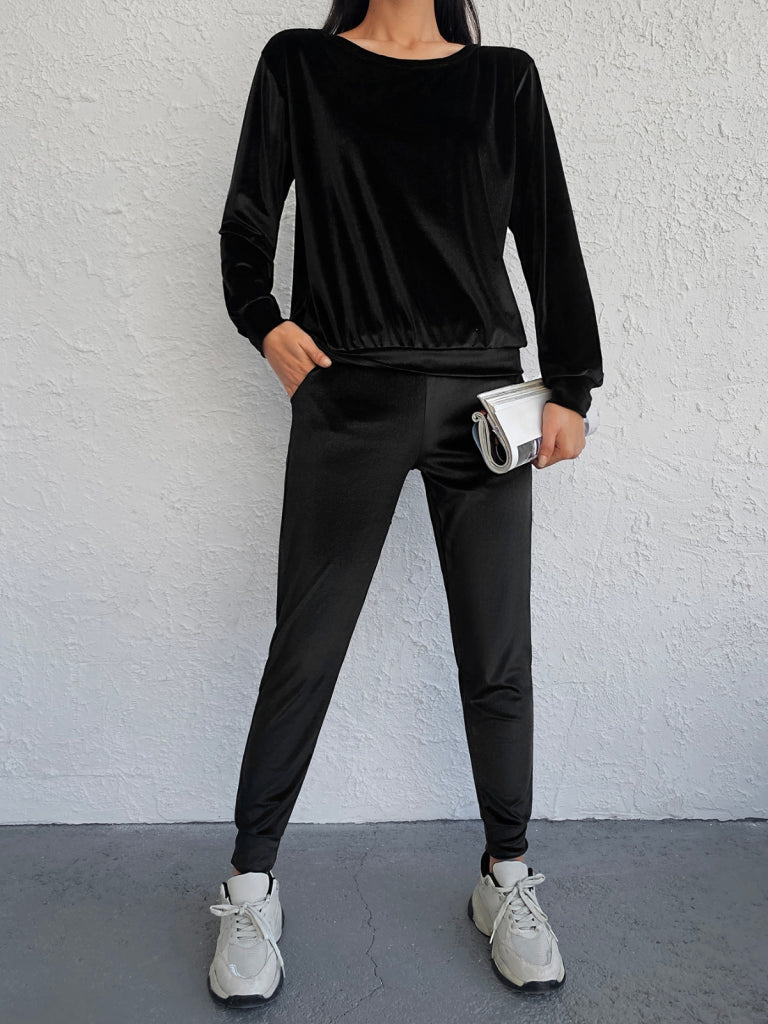 Kadın Siyah Uzun Kollu Tek Omuzu Açık Kadifetakım