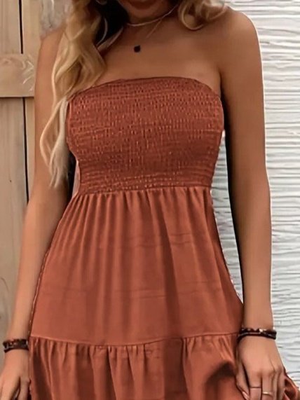 Kadın Straplez Göğüsten Lastikli Kloş Aerobin Uzun Elbise