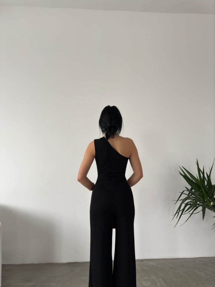 Kadın Tek Omuz Acık Detaylı Scuba Tulum Elbise