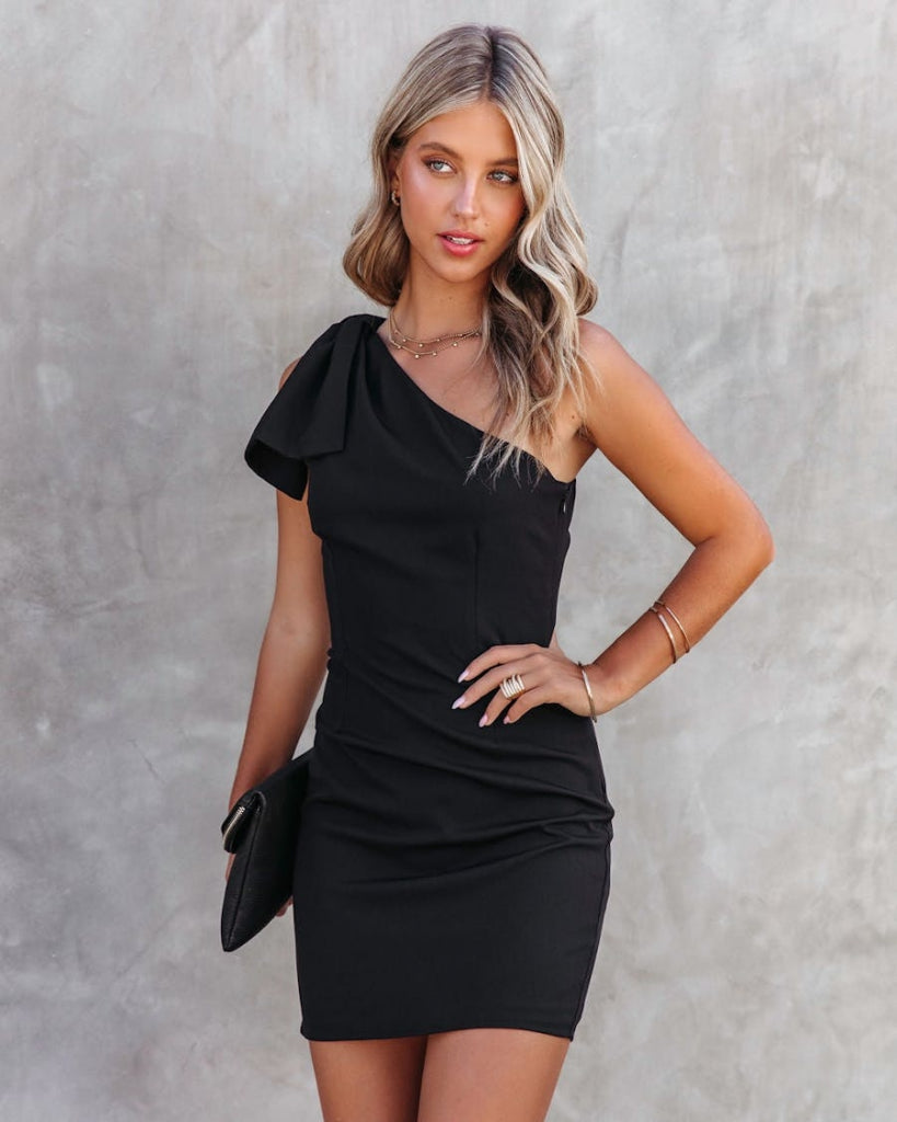 Kadın Tek Omuzu Açık Kelebek Detaylı Janjan Krep Elbise