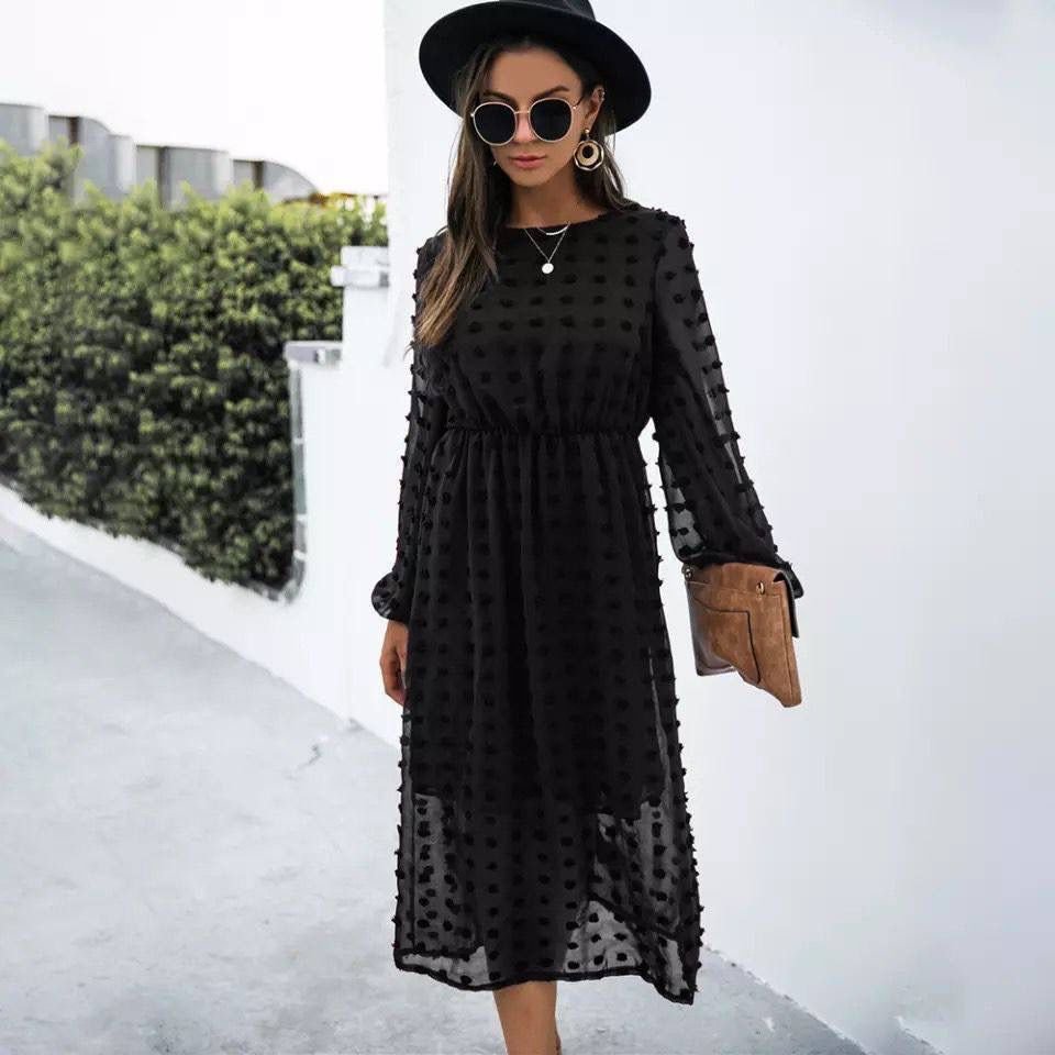 Kadın Uzun Kollu Astar Detay Fırsat ürün Ponpon şifon Elbise