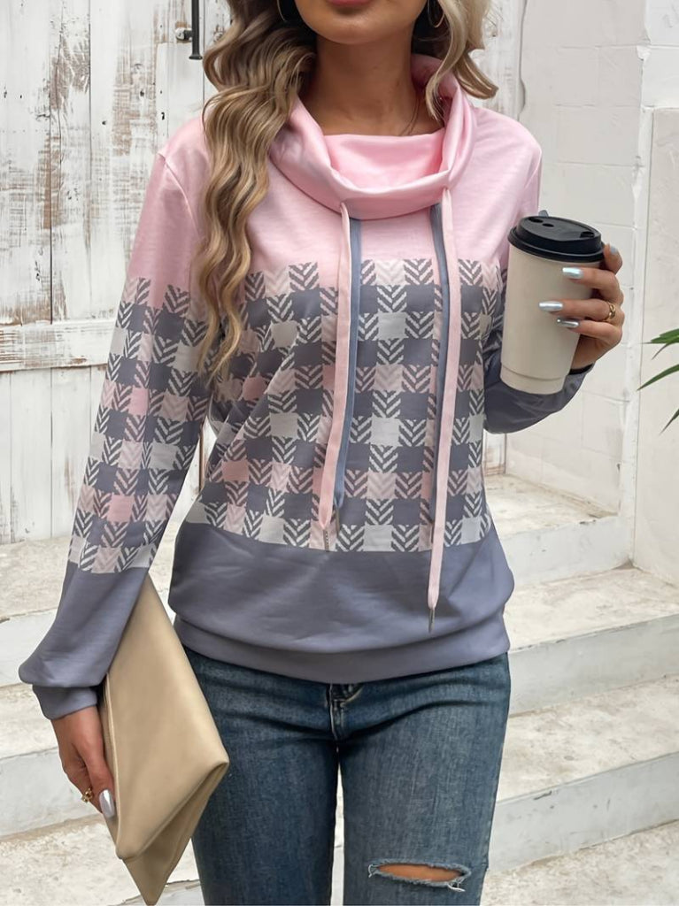 Kadın Uzun Kollu Balıkçı Yaka Bağcıklı Desenli şardonlu Dalgıç Bluz