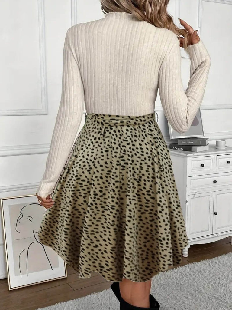 Kadın Uzun Kollu Balıkçı Yaka Belden Bağlamalı üst Kaşkorse Eteği Dalgıç Kısa Elbise