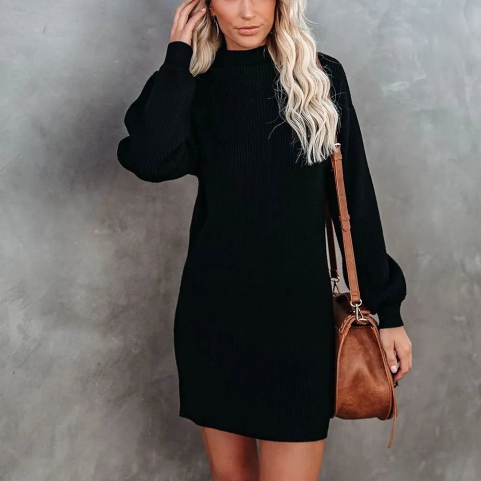 Kadın Uzun Kollu Balıkçı Yaka şardonlu Kaşkorse Elbise