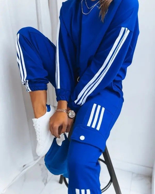 Kadın Uzun Kollu Beyaz şerit Detay Kargo Cep Iki Iplik Ikili Takım