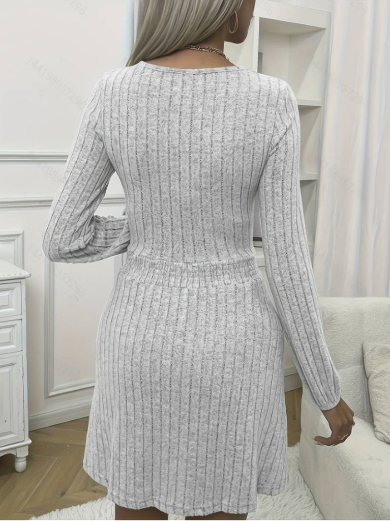 Kadın Uzun Kollu Bisiklet Yaka Beli Lastikli şardonlu Kaşkorse Mini Elbise