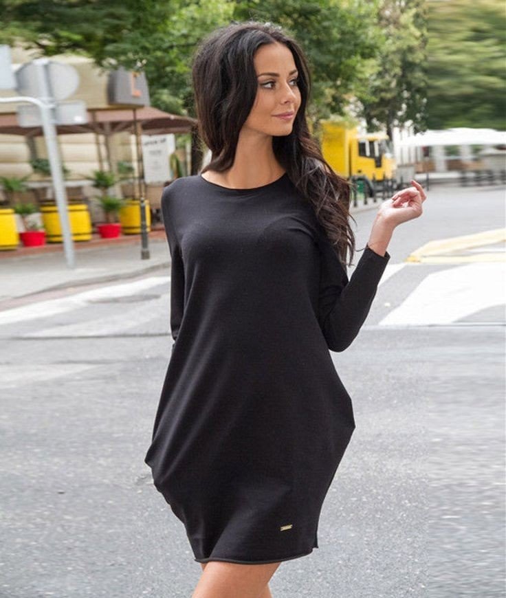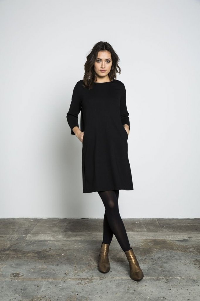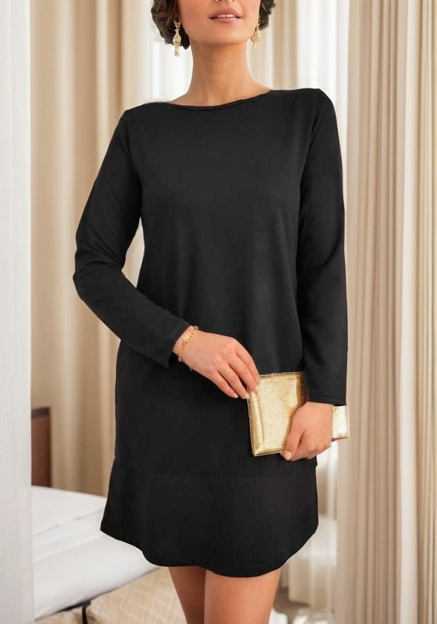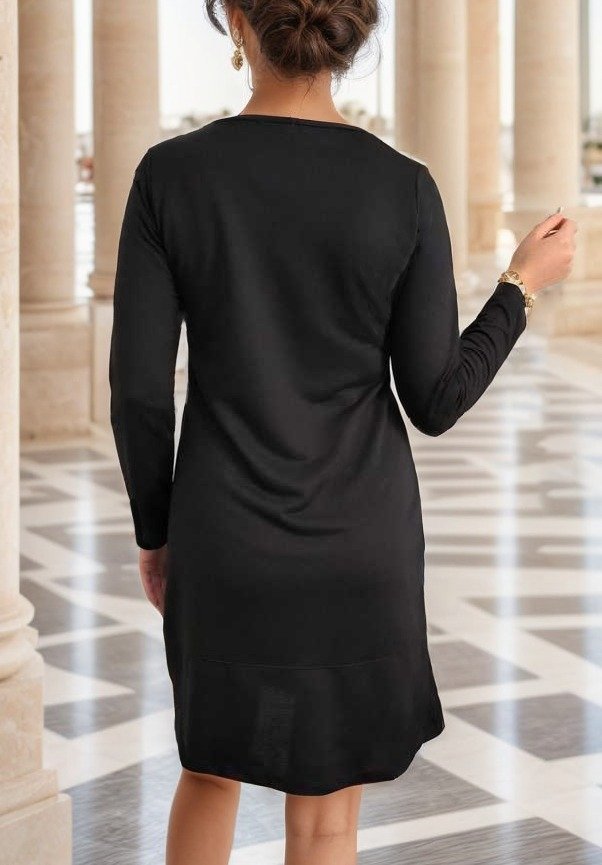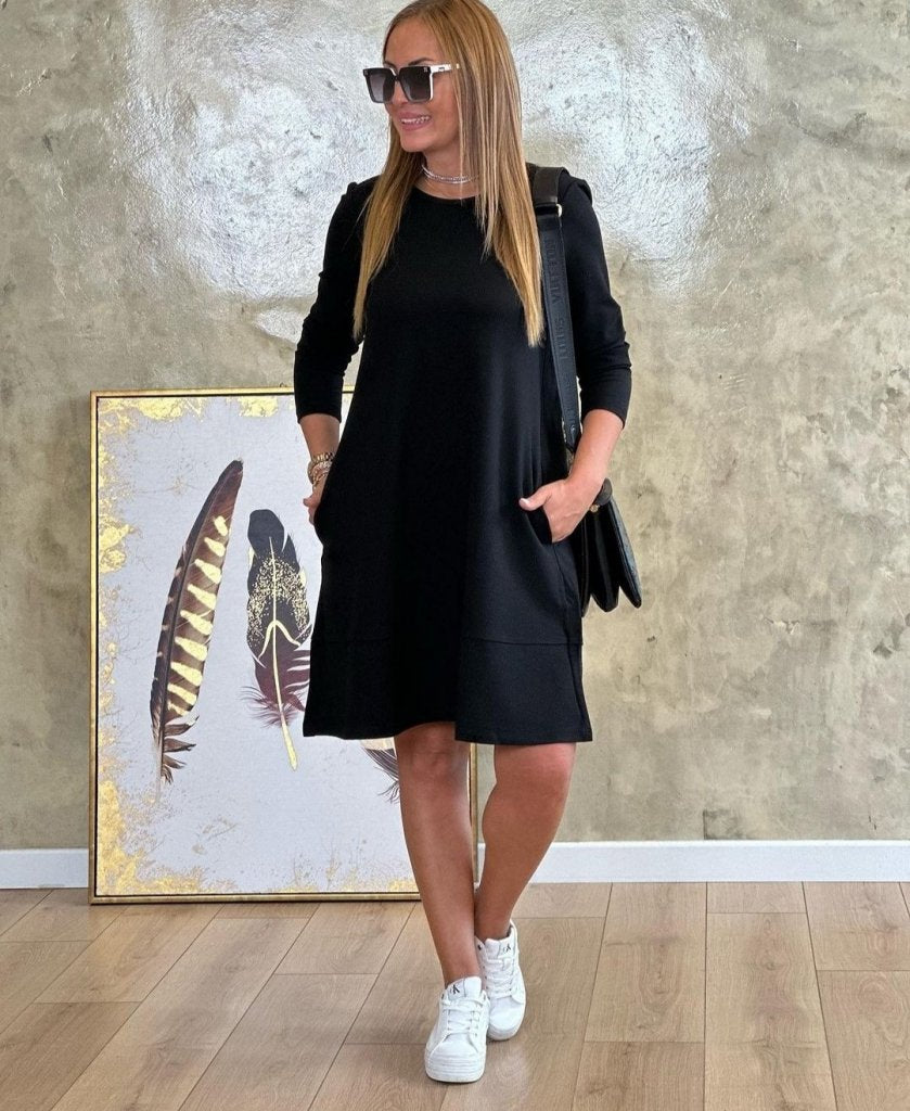 Kadın Uzun Kollu Bisiklet Yaka Cep Detay Etek Ucu Volanlı Iki Iplik Elbise