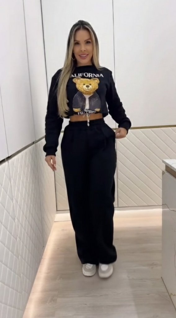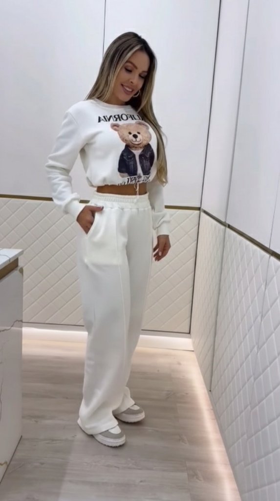 Kadın Uzun Kollu Bisiklet Yaka Desenli Iki Iplik şardonlu Bluz Ve Pantolon Ikili Takım