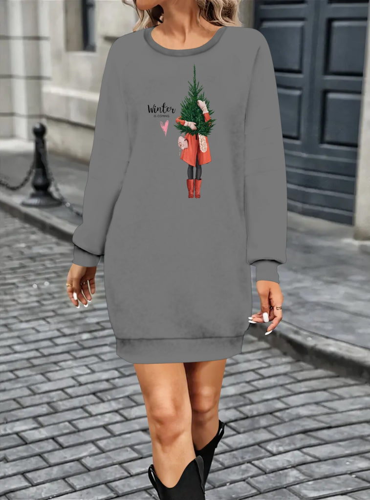 Kadın Uzun Kollu Bisiklet Yaka Desenli Kısa Viskon Iki Iplik Elbise
