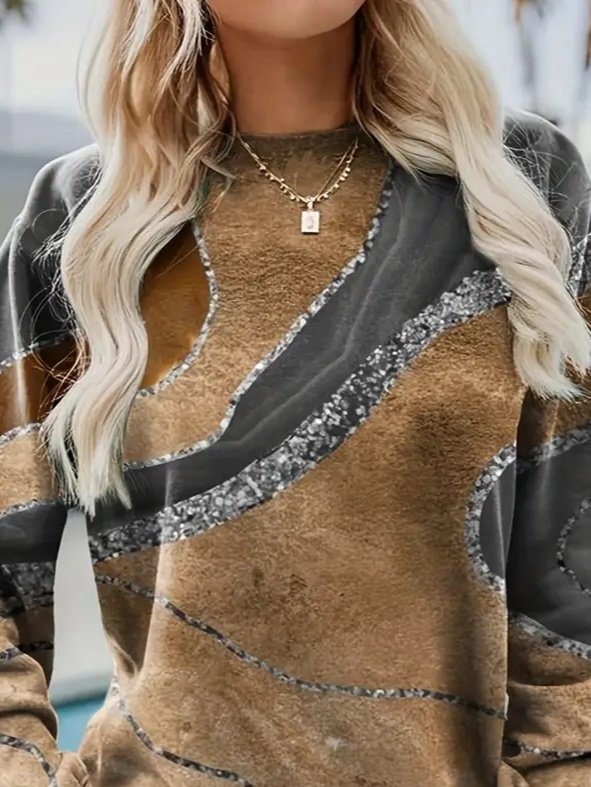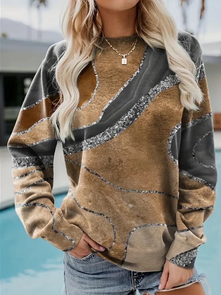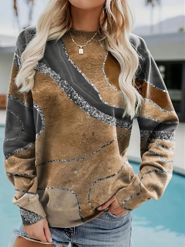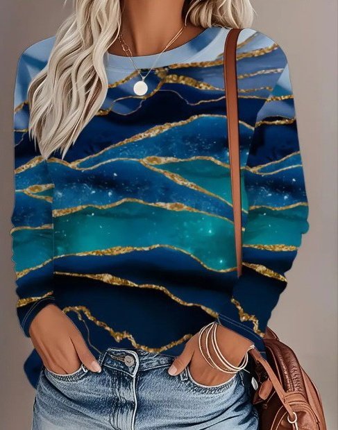 Kadın Uzun Kollu Bisiklet Yaka Desenli Modal Bluz