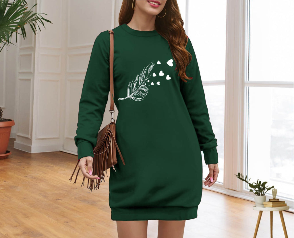 Kadın Uzun Kollu Bisiklet Yaka Desenli Viskon Iki Iplik Elbise