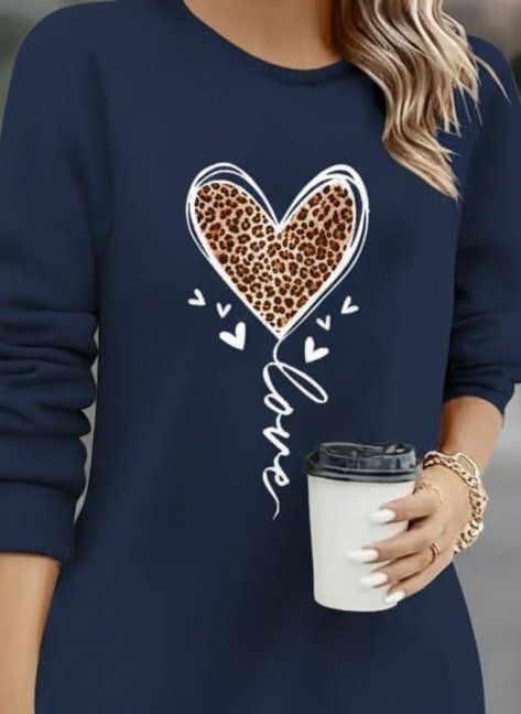 Kadın Uzun Kollu Bisiklet Yaka Kalp Desenli Kısa Viskon Elbise