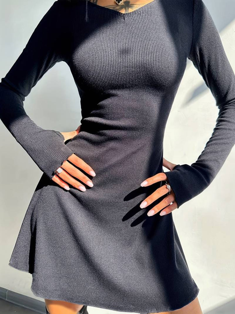 Kadın Uzun Kollu Bisiklet Yaka Kısa Kaşkorse Elbise