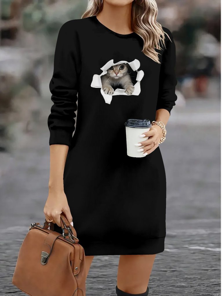 Kadın Uzun Kollu Bisiklet Yaka Kısa Viskon Iki Iplik Elbise