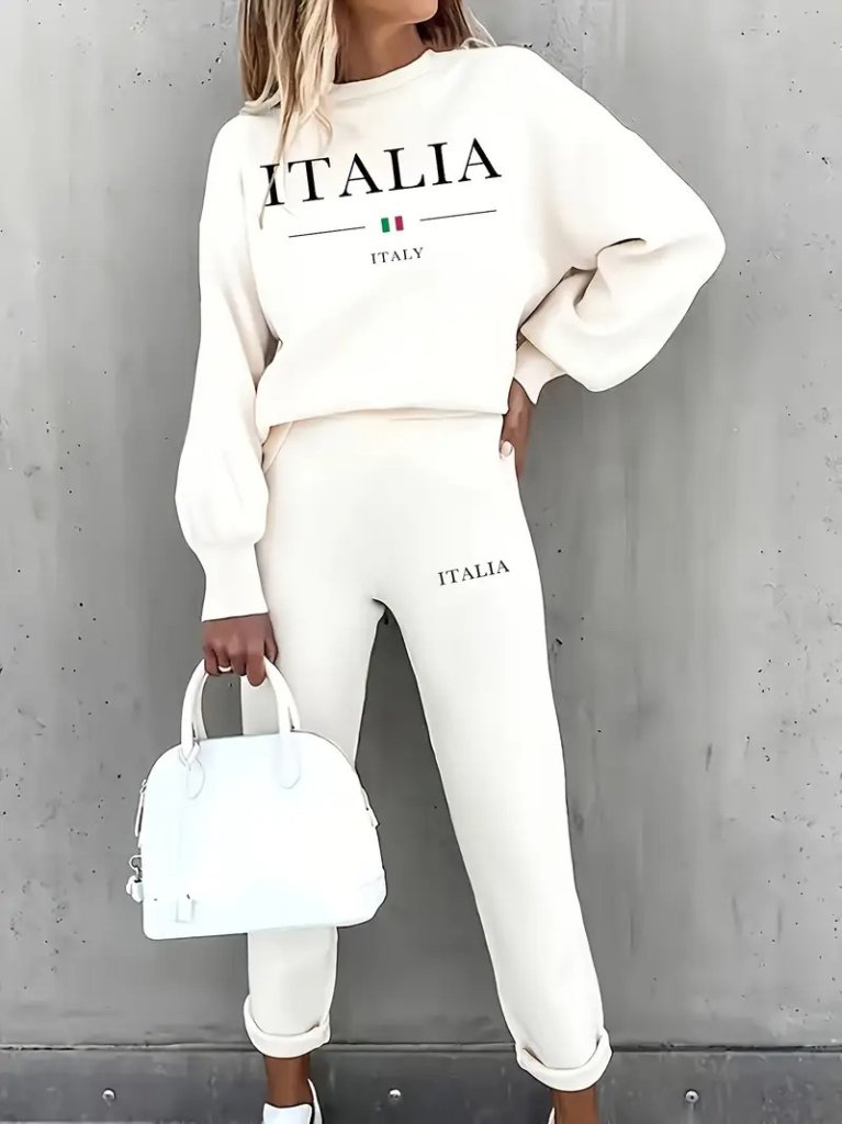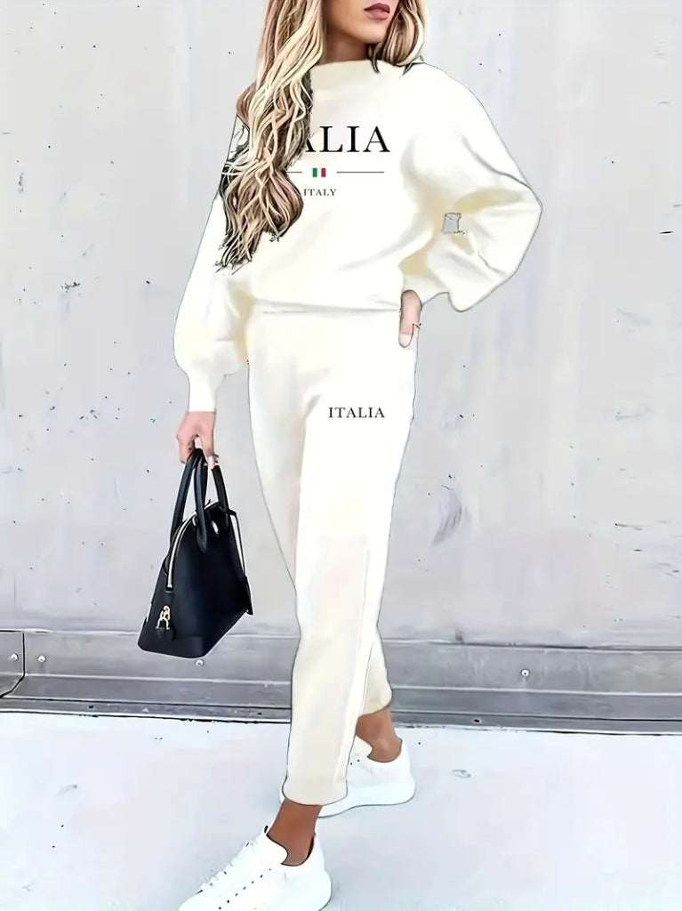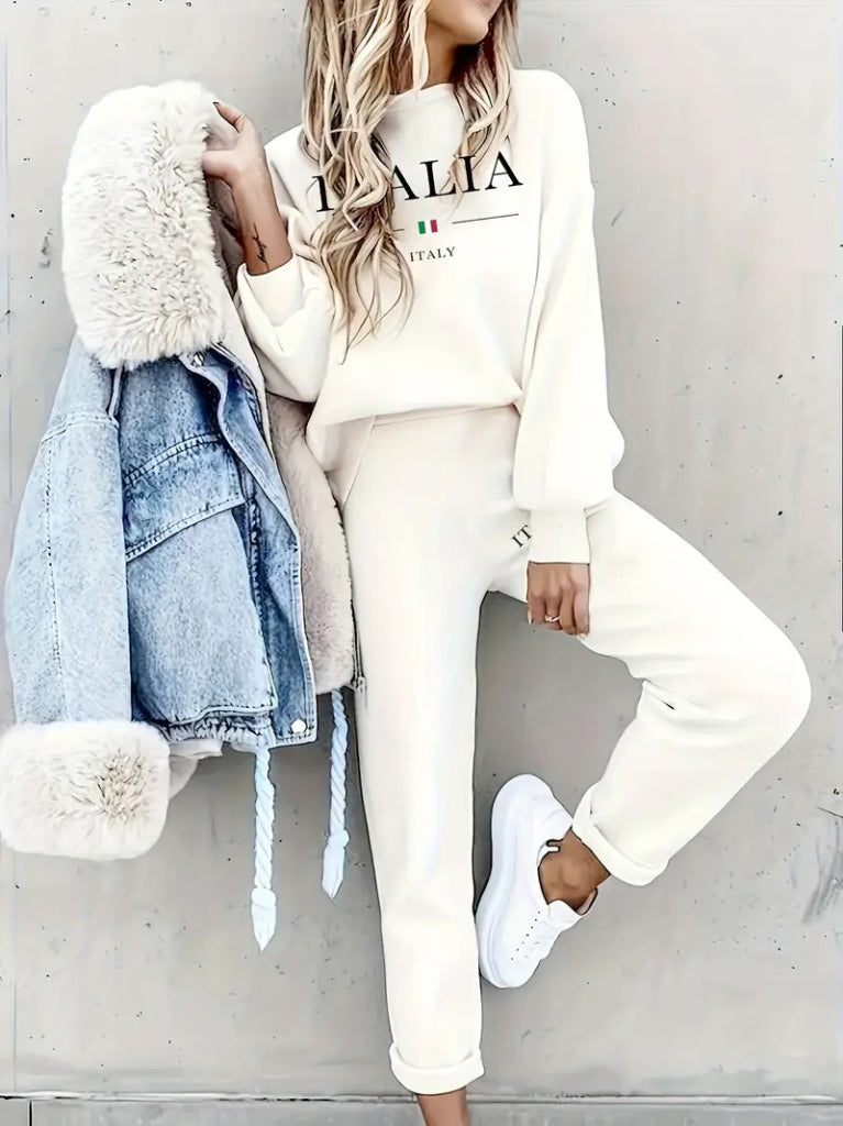 Kadın Uzun Kollu Bisiklet Yaka şardonlu üç Iplik Bluz Ve Pantolon Ikili Takım