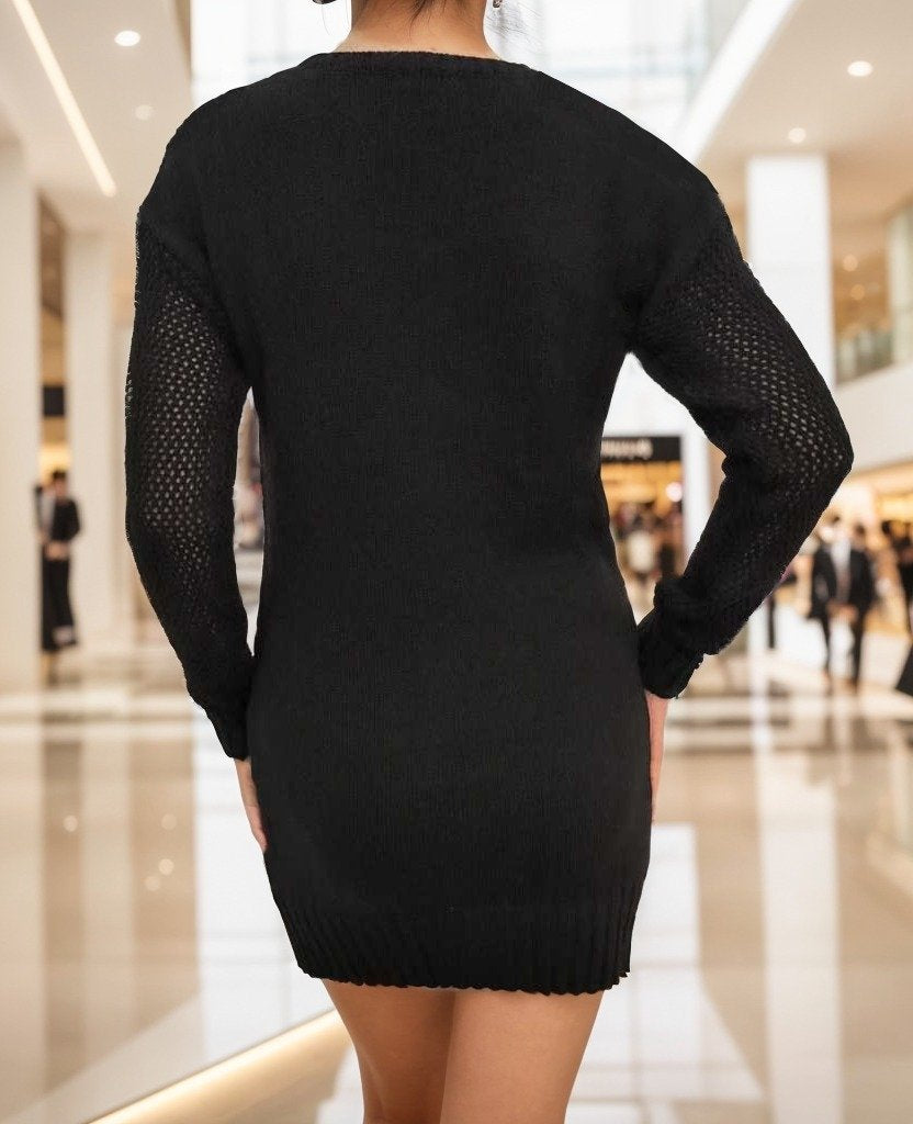 Kadın Uzun Kollu Bisiklet Yaka Triko Elbise(çorapsız)