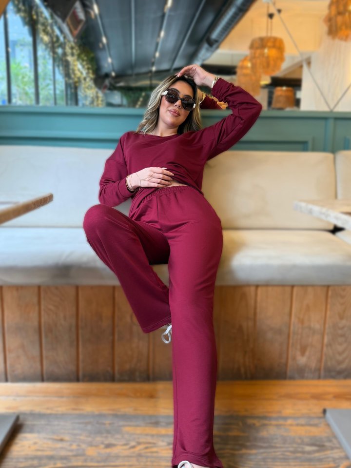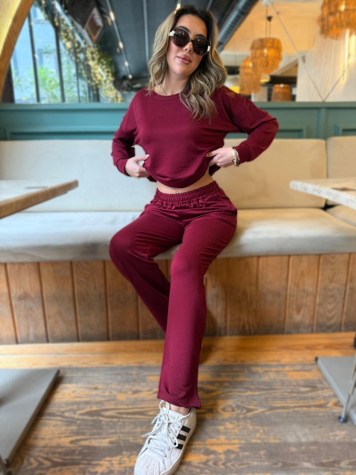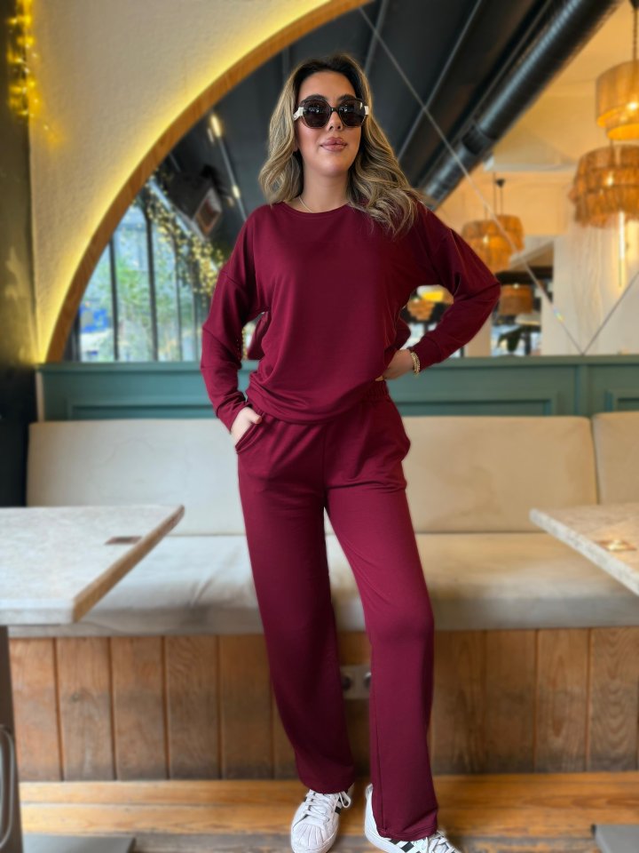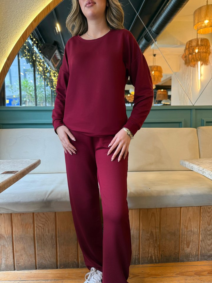 Kadın Uzun Kollu Bisiklet Yaka Viskon Iki Iplik Bluz Ve Pantolon Ikili Takım