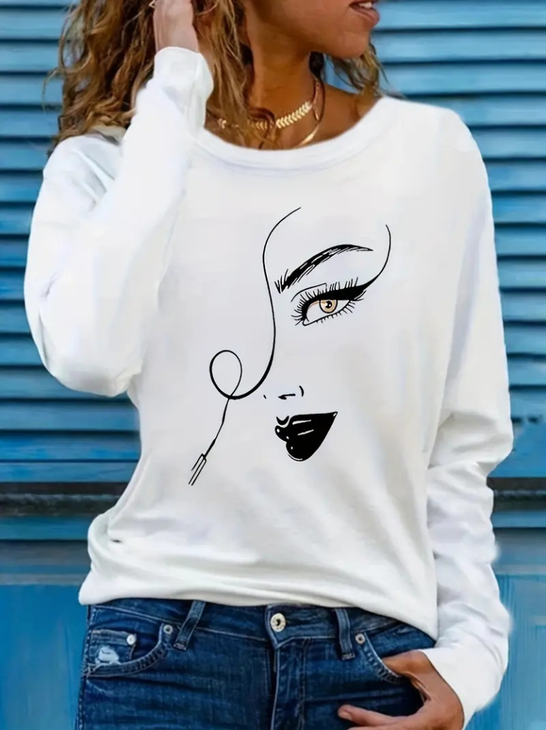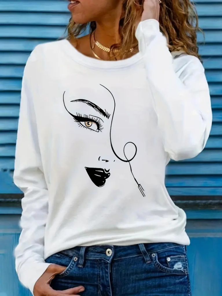 Kadın Uzun Kollu Bisiklet Yaka Yüz Desenli Viskon Bluz
