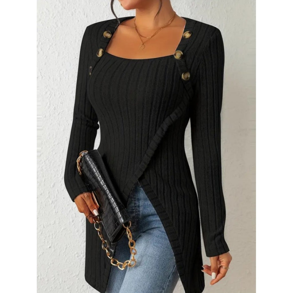 Kadın Uzun Kollu Derin Kare Yaka Düğme Detay şardonlu Kaşkorse Kruvaze Bluz